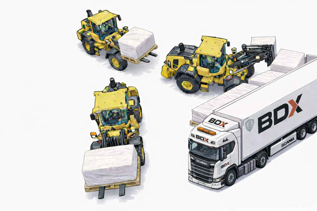 Om det inte är möjligt att köra in på adressen kan lossning ibland ske från vägen, där lastbilens öppning riktas mot infarten och exempelvis en hjullastare lyfter av produkterna. I sådana fall behöver du som ansvarig köpare säkerställa vilka regler och förutsättningar som gäller i området — till exempel hänsyn till närliggande bostäder, hastighetsbegränsningar och vägens bredd.