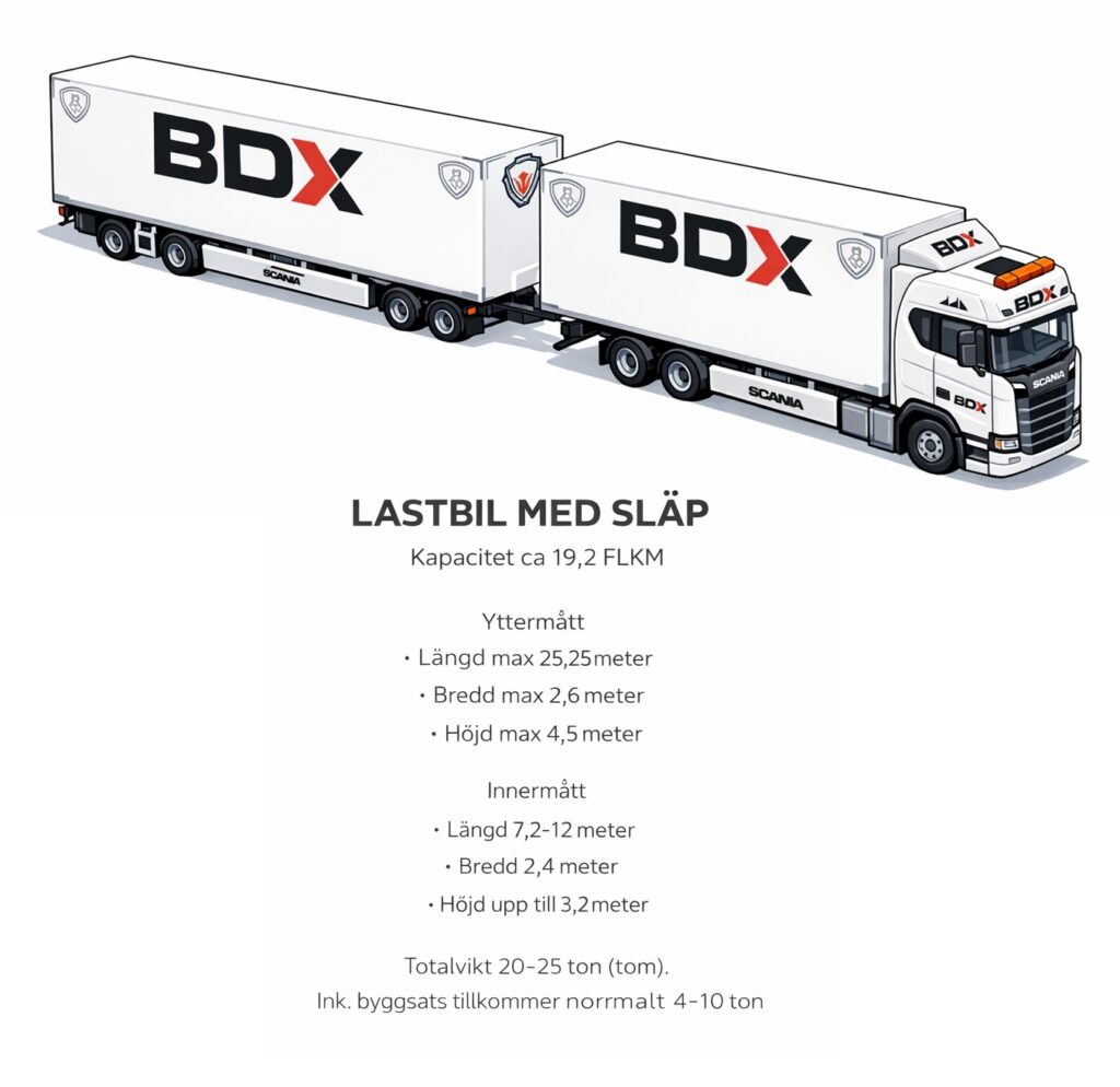 Vid leveransmetod lastbil med släp krävs utrymme. För vändning utan backning rekommenderas en yta med en omkrets på minst 30 meter. Observera att underlaget på ytan ska klara tyngden på fordonet.